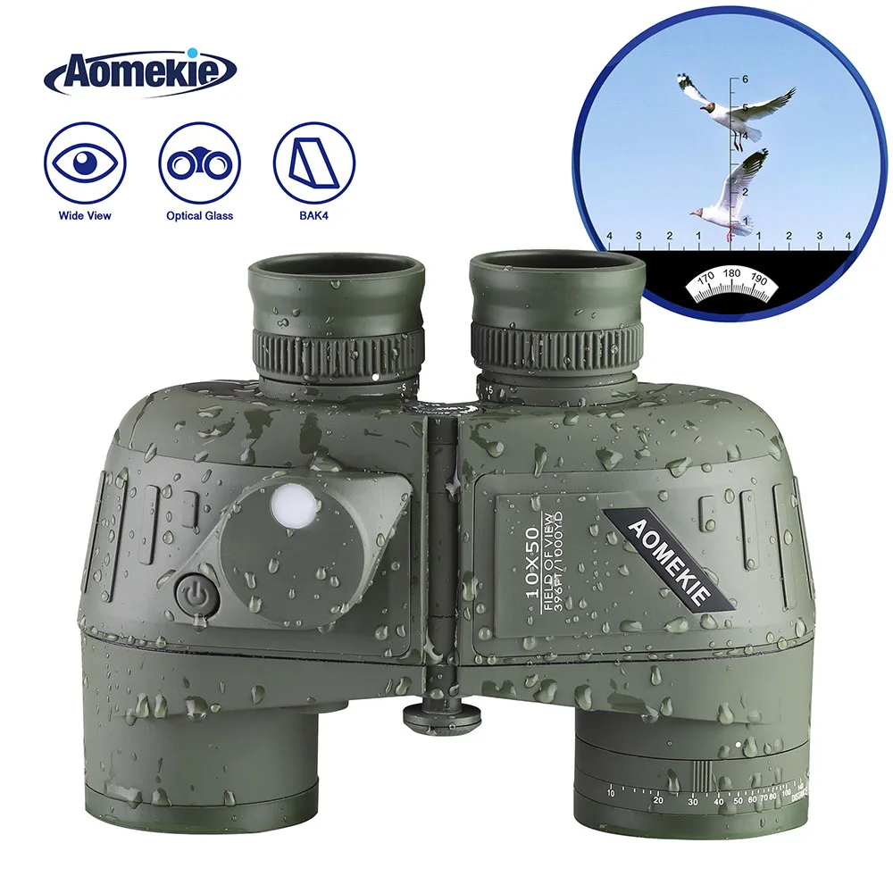 Marine Binoculars 10×50 Waterproof Binoculars with Rangefinder Compass BAK4 Prism FMC Lens for Birdwatching Hunting Boating