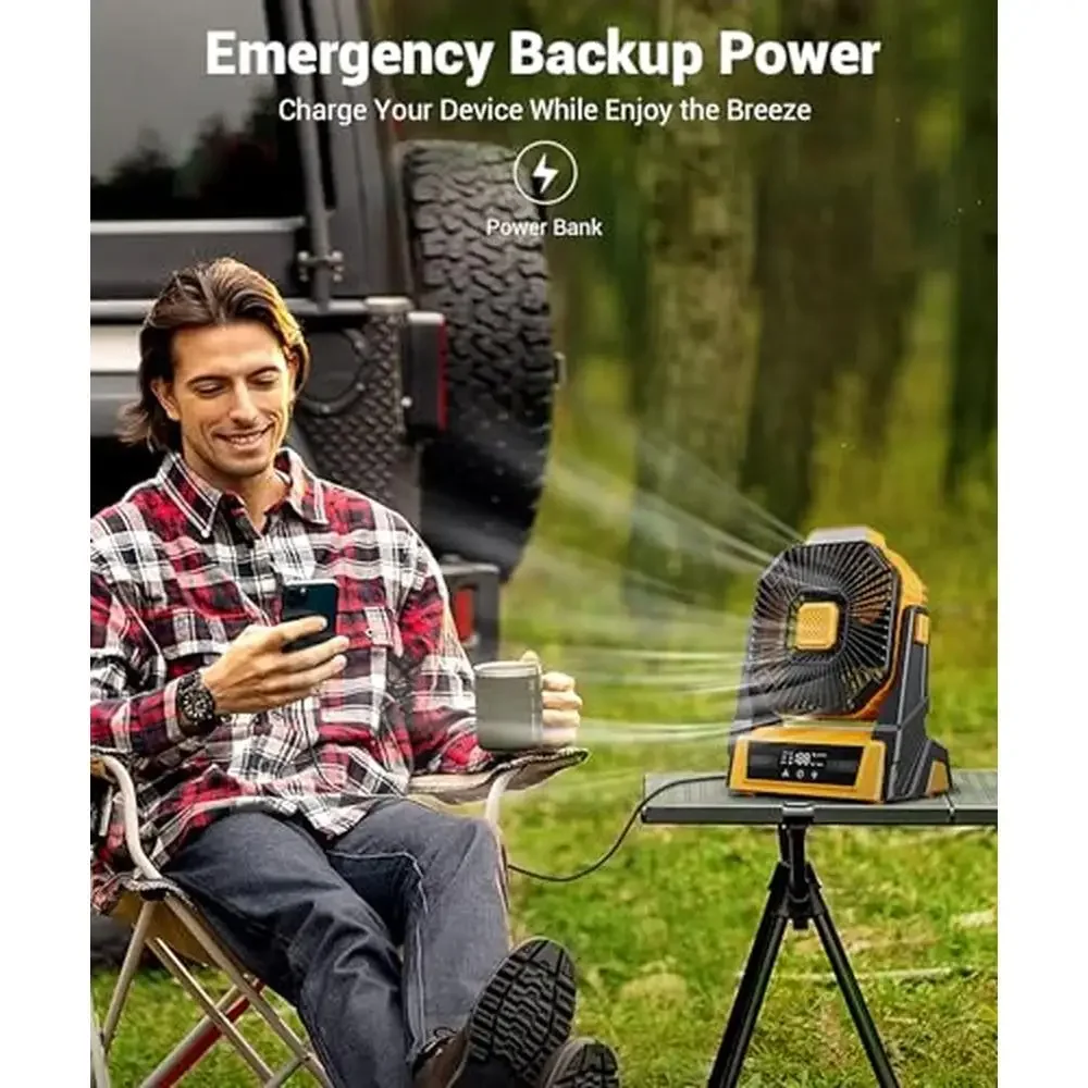 This portable fan is designed to provide convenience during your outdoor adventures. KopBeau battery operated fan comes with 20000mAh rechargeable batteries that can be used as power banks to charge other devices, such as smartphones or tablets. With its new LED display and cool design, this camping gear must haves features a chill style in your outdoor camping life, enjoy the cool wind everywhere in the middle of your trip.